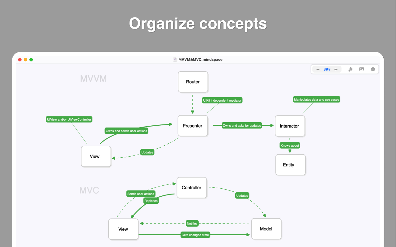 你可以自由地重组你的想法,以适应你大脑的知识宫殿。 在MindSpace中,您可以自由拖动节点并随时撤消操作。